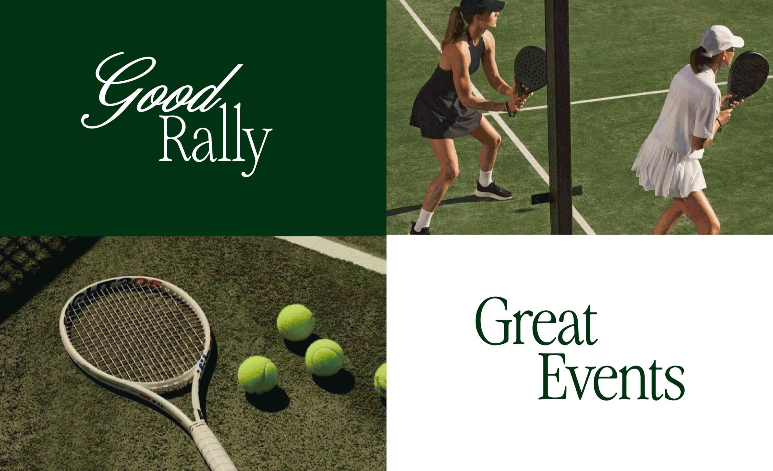 The founders envisioned a brand that felt modern, chic, energetic, and aspirational—while staying approachable, inclusive, and genuinely fun. Rooted in the values of community (social by design), playing with purpose, and modern club culture, Good Rally lives at the intersection of wellness and movement.